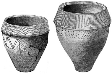Canon Greenwell unearthed the collared urns illustrated rightabove from a barrow at Cold Kirby, North Yorkshire: