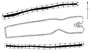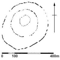 Around 3700 BC ‘causewayed enclosures’ began to be constructed. They are found almost exclusively in the southern half of England. Basically, they comprise a number (typically 1 to 3) of, roughly circular, segmented, concentric enclosing ditches – the spoil from the ditches being used to form a bank on the inner side of the circuit. The gaps between the segments are the causeways – the wider ones, which align with gaps in the adjacent bank, form entrances to the enclosure. At Windmill Hill, in Wiltshire, probably the most well known causewayed enclosure, the outer of its three encircling ditches encloses about 8.5 hectares, making it large for the type.[*] Broadly speaking, the ditches of causewayed enclosures are U-shaped, 3–4 metres wide and 1–2 metres deep. They have been found to contain not only discarded items of rubbish, like broken pottery, animal bones and flint knapping waste, but also items which appear to have been formally placed, such as human and animal burials, human skulls, axe-heads and complete pots (which possibly contained food or drink when deposited). The purpose of causewayed enclosures is much debated, but a popular theory is that they served as meeting places, where neighbouring groups could congregate for purposes of trade or ritual. Having said that, some causewayed enclosures evidently adopted the role of defended settlements (such as Crickley Hill, in Gloucestershire, and Carn Brea, in Cornwall).