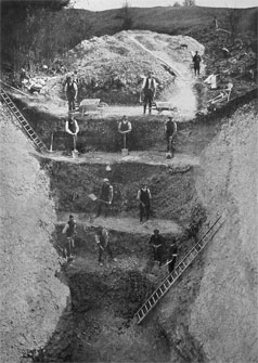 Harold St George Gray directed excavations at Avebury in 1908, 09, 11, 14 and 22. This photograph, showing his workers, vividly illustrates the ditch’s original depth.