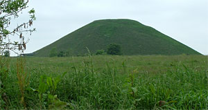 There have been three major excavations of Silbury Hill, which is less than a mile to the south of Avebury, since Pepys’ time. In 1776 a shaft was driven vertically through the mound; in 1848 a horizontal tunnel was dug to its centre; and between 1968 and 1970 further excavations, along the line of the 1848 tunnel, were carried out. Despite the local tradition mentioned by Pepys, no burial has been found. In 2000, the backfilling of the 1776 shaft collapsed, leaving a large hole in the Hill’s summit. Further investigation showed that there were also voids in the other diggings’ backfill, and that there was a danger of the whole monument collapsing. Essential works to stabilize the Hill were carried out in 2007–8, giving archaeologists access to its interior. New datable material was found, and, additionally, archive material was reassessed.[*] A, perhaps surprising, picture of Silbury Hill’s chronology has emerged. It began in about 2450 BC, as an unimposing gravel mound, less than a metre high and 9–10 metres in diameter. The site then, seemingly, underwent virtually continuous development, evolving through many stages, for between 55 and 155 years, at which point work stopped, leaving the Silbury Hill we know today. (Well not quite – it appears that, in the early-11th century AD, a spiral pathway was dug into the hillside, the top was levelled-off and a timber fortification erected on the summit[*].) The monument’s start-date and its relatively brief history suggest it was the swansong of the local pre-Beaker population – it had no meaning in ‘Beaker culture’, so it was simply abandoned.[*]