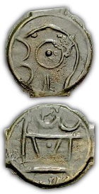 It would appear from the illustration of the potin fragment found at Glastonbury Lake Village, published by Arthur Bulleid and his co-worker, Harold St George Gray, in 1917 (the fragment itself is now missing), that it was of similar type to the one in the photo. Dating these early coins is far from being an exact science, but according to a scheme proposed by Colin C. Haselgrove* this type post-dates 60 BC.