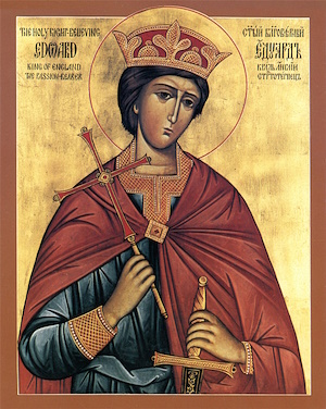 In 1001, according to the Passio Eadwardi, Edward’s remains were moved to a more prominent position in Shaftesbury Abbey’s church. In a charter of the same year (S899), Æthelred granted the monastery (cenobium) at Bradford on Avon to the nuns of Shaftesbury, as a refuge for them, and “the relics of the blessed martyr and of the other saints”, from Viking raids. Æthelred says he makes the gift: “to Christ and His saint, my brother Edward, whom, covered in his own blood, the Lord Himself has deigned to magnify by many signs of power”. A 1008 law-code of Æthelred’s states: “And the councillors have decreed that St Edward’s festival is to be celebrated over all England on the 15th of the Kalends of April [i.e. 18th March, the day he was killed].” (V Æthelred, 16).[*]