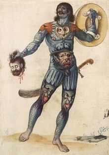 Possibly, then, it was their tendency to decorate themselves with extravagant body-art that caused the Romans to nickname the inhabitants of northernmost Britain Picti: ‘painted people’. On the other hand, maybe the association of tattooing with these British “barbarians” was based not on reality, but on a stereotyped notion of those distant savages. In other words, perhaps it was a myth that the Picts tattooed their bodies. The British cleric Gildas, writing in about 545(?), likens “the terrible hordes of Scots and Picts” to “dark swarms of worms”, and says of them: