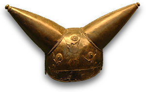 The clothing they wear is striking – shirts which have been dyed and embroidered in varied colours, and breeches, which they call in their tongue bracae; and they wear striped coats, fastened by a buckle on the shoulder, heavy for winter wear and light for summer, in which are set checks, close together and of varied hues. For armour they use long shields, as high as a man, which are wrought in a manner peculiar to them, some of them even having the figures of animals embossed on them in bronze, and these are skilfully worked with an eye not only to beauty but also to protection. On their heads they put bronze helmets which have large embossed figures standing out from them and give an appearance of great size to those who wear them; for in some cases horns are attached to the helmet so as to form a single piece, in other cases images of the fore-parts of birds or four-footed animals… Some of them have iron cuirasses, chain-wrought, but others are satisfied with the armour which Nature has given them and go into battle naked.Library of History V, 30