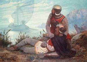 The Saxons hatch a plot to overthrow Vortigern. They send envoys to the Britons, offering peace and “perpetual friendship”. Vortigern and his council agree to a treaty. A meeting between Britons and Saxons is arranged, at which both parties would be unarmed, to ratify the treaty.
