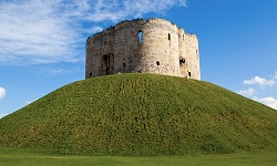 It is generally supposed that the first castle raised in York was on the site of Clifford’s Tower (above) – east of the river Ouse, to the south of the erstwhile Roman fortress (within which is York Minster) – and that the second was the one later known as the Old Baile – west of the Ouse – the overgrown motte of which can still be seen (below).